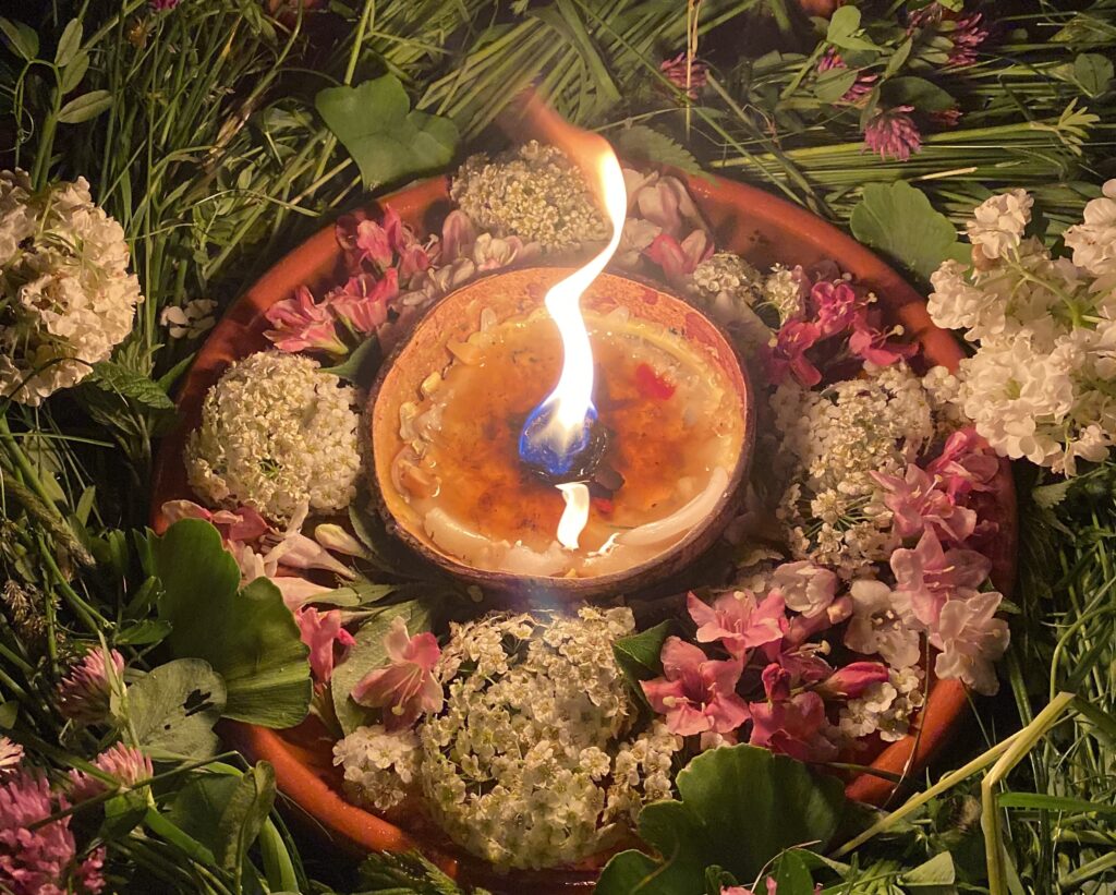 The Rose Flame is a fire being & living altar helping us to cultivate sacred space and presence.